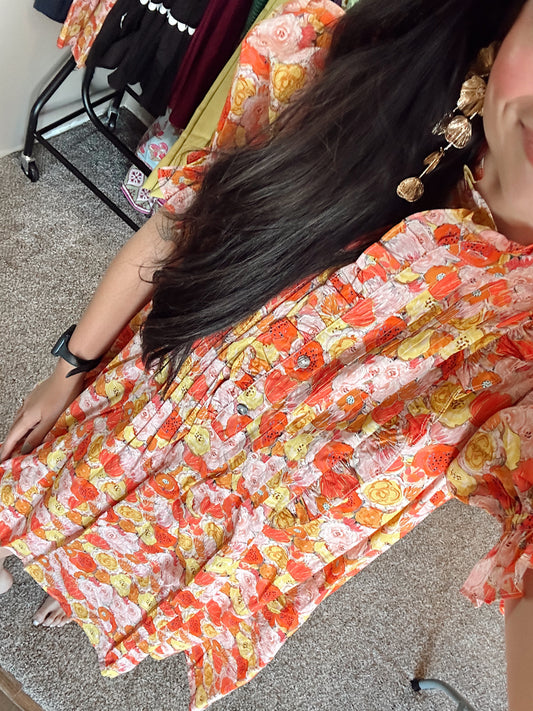 Floral Print Puff Sleeve Mini Dress