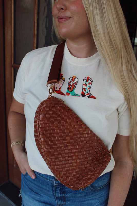 Romee Woven Saddle Bag: Brown