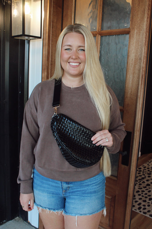 Romee Woven Saddle Bag: Black