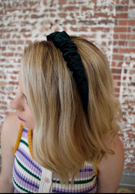 Ruffle Velvet Headband (Crushed Emerald)