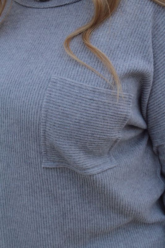 Ribbed Brushed Sweater With Pocket- Heather Grey (PLUS SIZE)