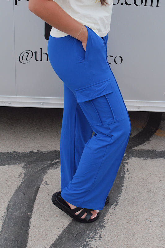 PLUS SIZE - Butter Straight Leg Cargo Sweatpants: Royal Blue