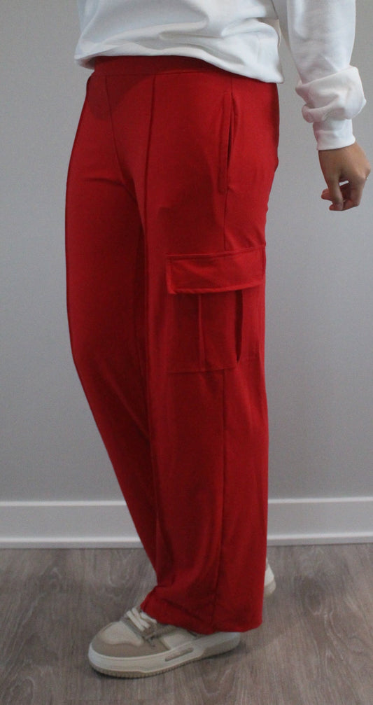 PLUS SIZE- Butter Straight Leg Cargo Sweatpants: Red