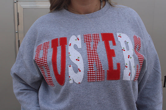 Nebraska Huskers Cartoon Mascot Gray Thrifted Tee
