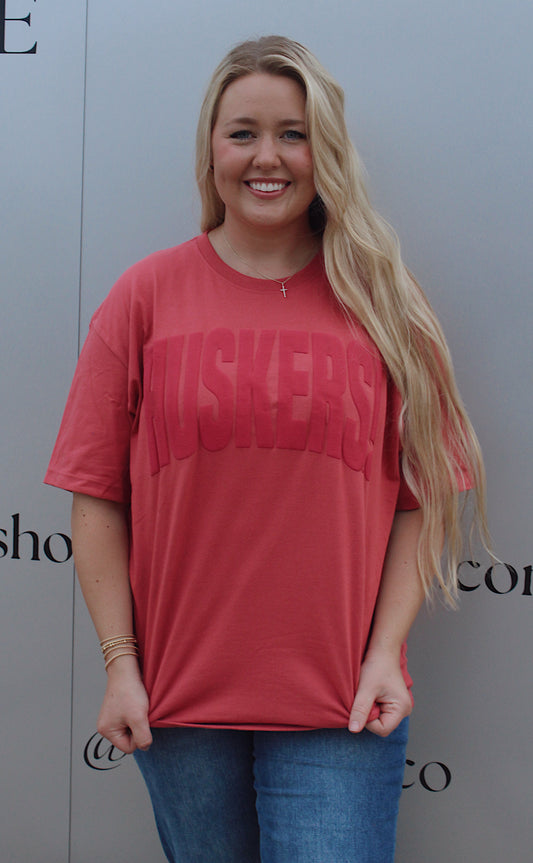 Nebraska Huskers Mono Puff Ink Red Heavyweight Tee