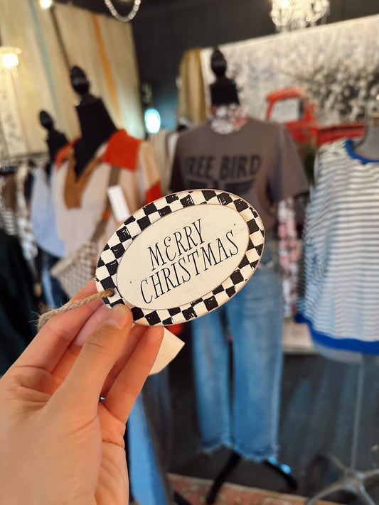 Checkered ‘Merry Christmas’ Ornament