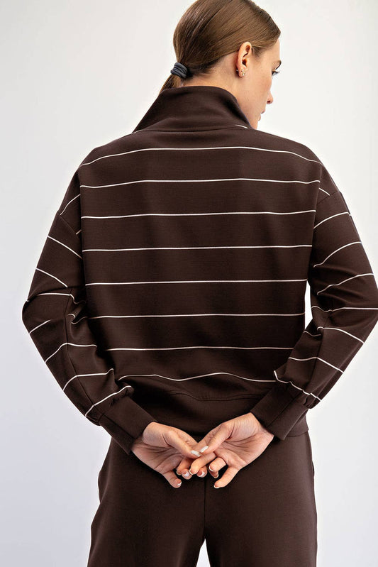 Modal Scuba Stripe V-Neck Jacket (Espresso/Cream)