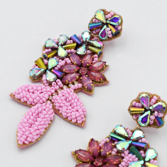 Glamorous Pink Leaf Earrings