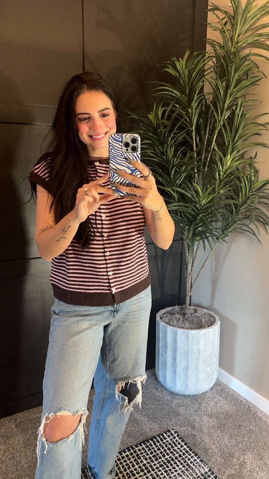 Striped Piper Vest Cardigan - Mini Stripe: Dark Wine