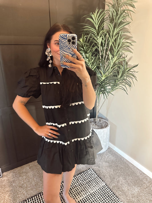 Sarah Scallop Detail Button Up Dress: Black