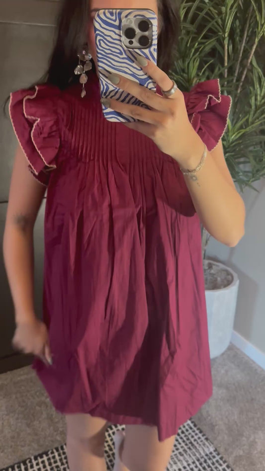 Kari High Neck Babydoll Mini Dress: Plum