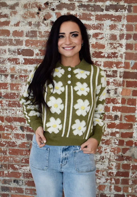 Sold outFrankie Floral Stripe Collar Sweater