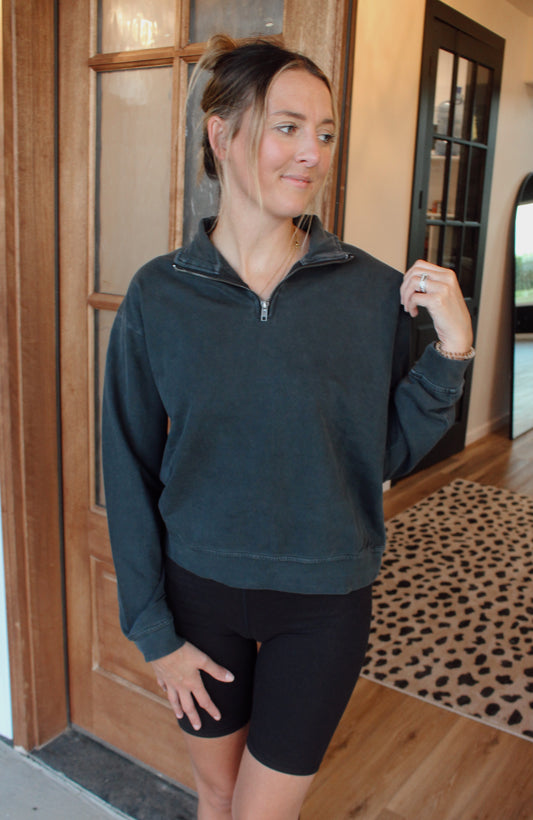 Acid Wash Fleece Half Zip Pullover - Brown (PLUS SIZE)