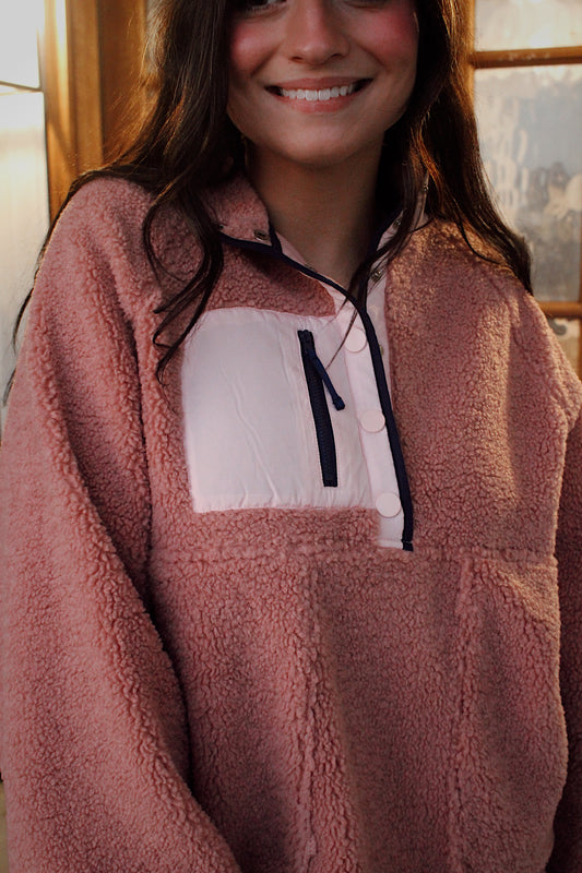 Mauve- Fleece Daily Colorblock Button Pullover