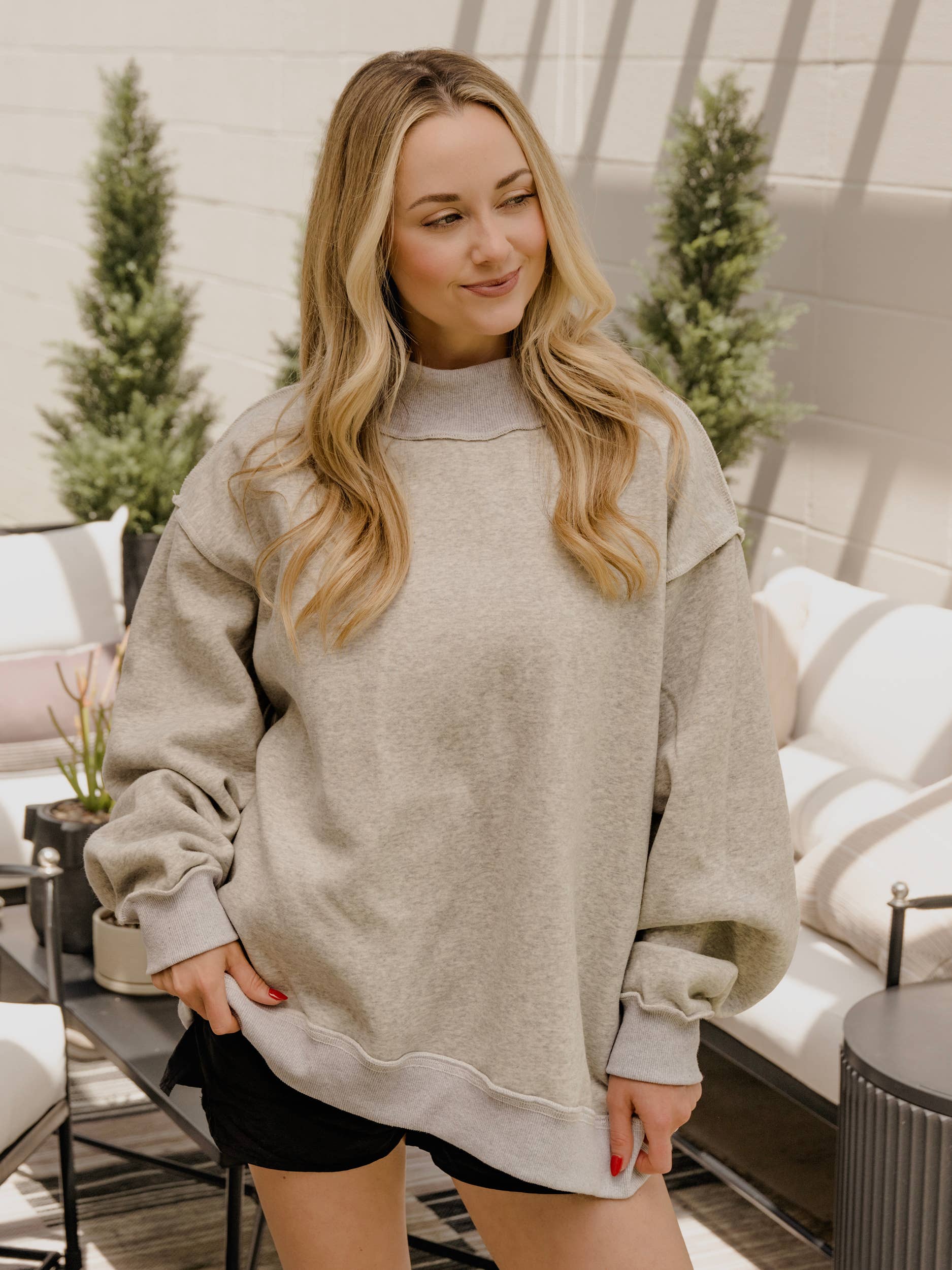Show your Huskers pride in cozy style with this oversized mock neck sweatshirt. Featuring a fun inside-out design and long sleeves, it’s perfect for game day or anytime you want to keep it cute and comfy.