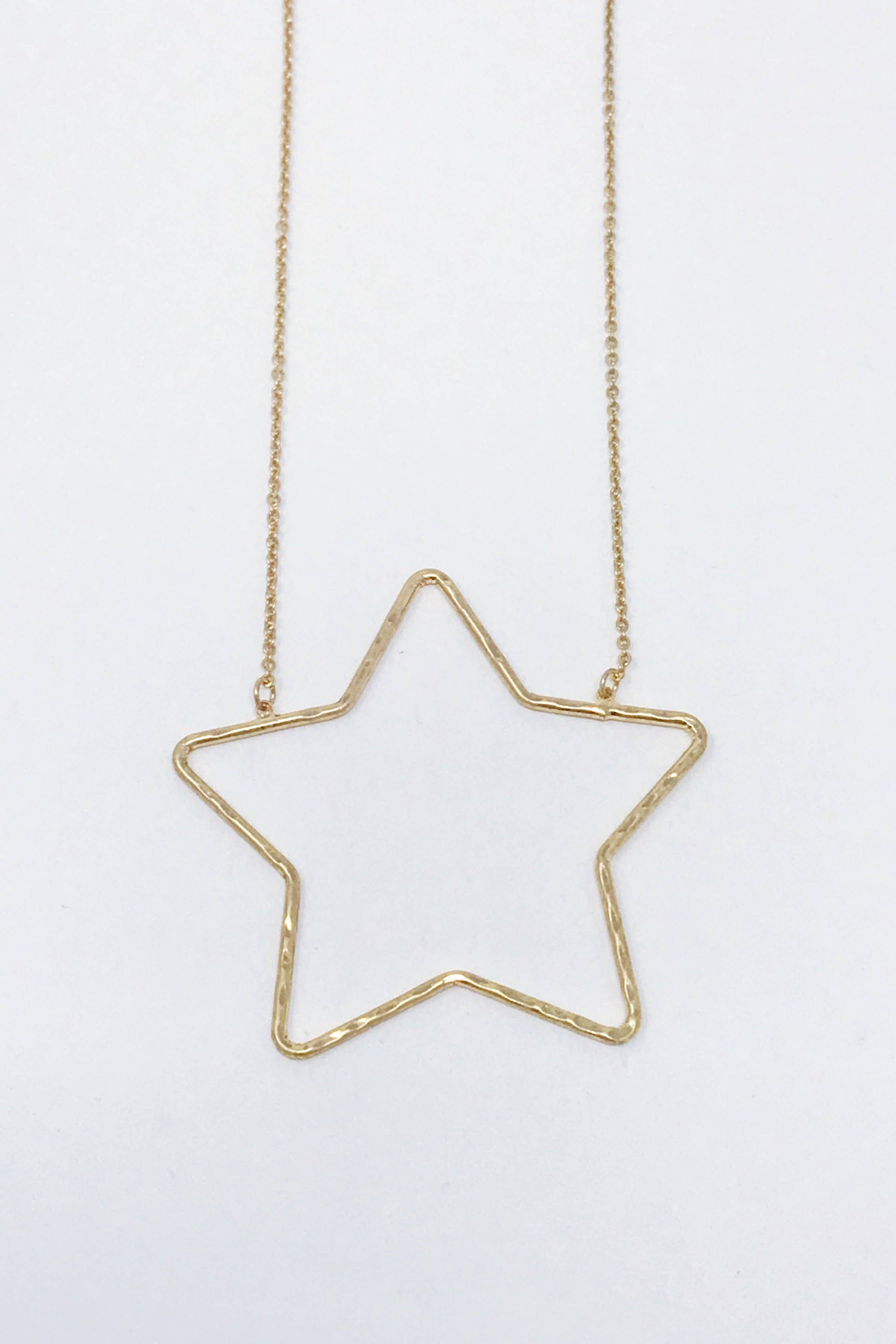 18 + 3 inch star necklace. Large hammered finish star pendant side handing necklace.